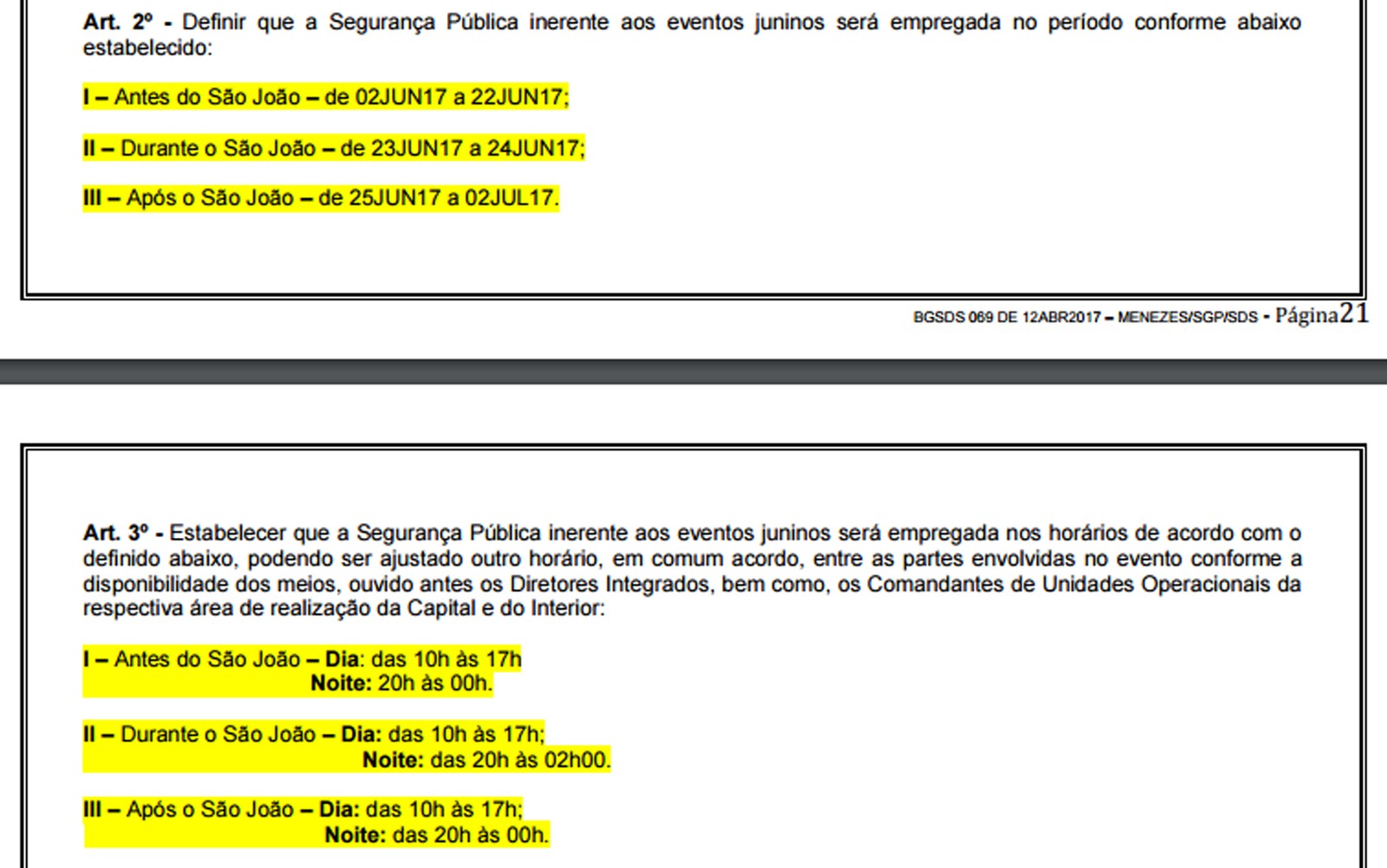 Durante o São João 2017, a Polícia Militar de Pernambuco vai trabalhar de 02 a 22 de junho, e de 25 a 02 de julho das 10h às 17h, e das 8h até a meia-noite, e nos dias 23 e 24 de junho o efetivo da PMPE será empregado até às 2h da manhã, esta é uma determinação da Secretaria de Defesa Social (SDS), e através da Portaria pública no Boletim-Geral. Nas cidades onde são utilizados trios elétricos, apenas um trio está autorizado, e só poderá percorrer 2,5 quilômetros. Quem promove os eventos terá de solicitar o policiamento, 15 dias antes.