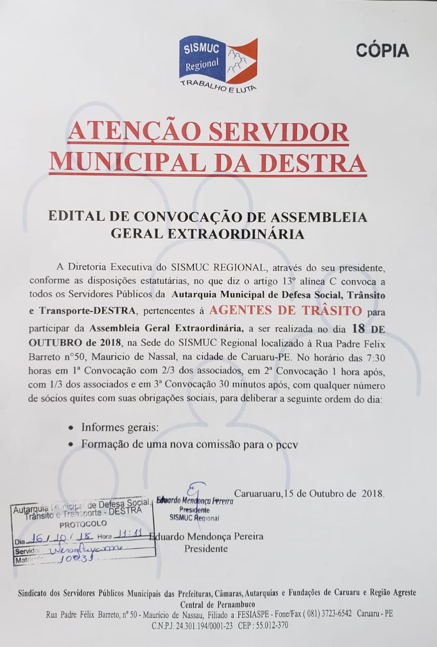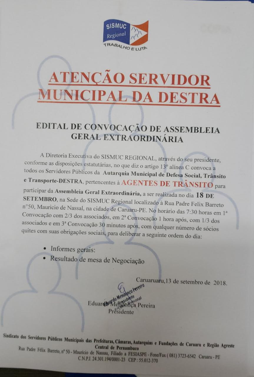 O SISMUC REGIONAL, na figura de seu Presidente Eduardo Mendonça, esteve na manhã de hoje (12/09), na Prefeitura Municipal de Caruaru, junto com representantes da Guarda Municipal (Icélio Ivan e Nathália Brito) e Agentes de Trânsito (Gerson Quaresma e Tiago Silva), para debaterem com a Administração Municipal (Henrique Oliveira e Emília Higino), assuntos pertinentes a categoria.